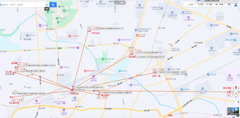 先剧TWo的行程。从沈阳北站附近扩散,去了惠工夜市、南东贸路、吉祥一路、机校路、陵东街道的芊芊足道、新丽都附近、巴山路、华山路37巷;然后沈阳站附近的……