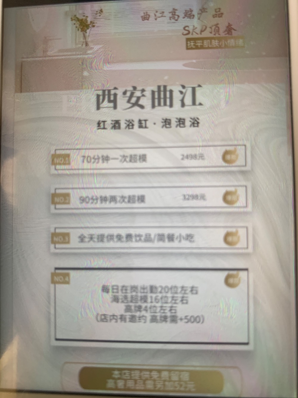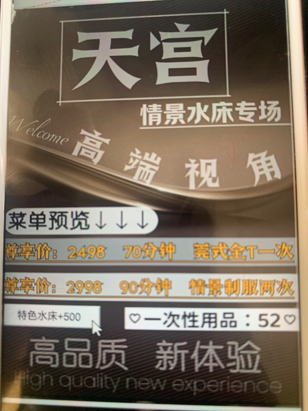 大同出差,无意间发现竟然有私影店,说实话对大同这个城市的服务业是不太B有希望的,加了老板V信一问,那家店在装修,另一家店开着bao了地址和价格,599……
